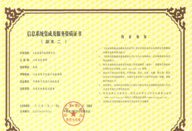軟件企業認定證書 、電子與智能化工程專業承包二級資質、安全生產許可證、涉密信息系統集成乙級 、安防工程設計、施工壹級、CCRC 信息安全服務資質認證貳級、ITSS 信息技術服務標準證書叁級,通過了ISO質量管理體系認證,信息技術服務管理體系認證、信息安全體系認證等。